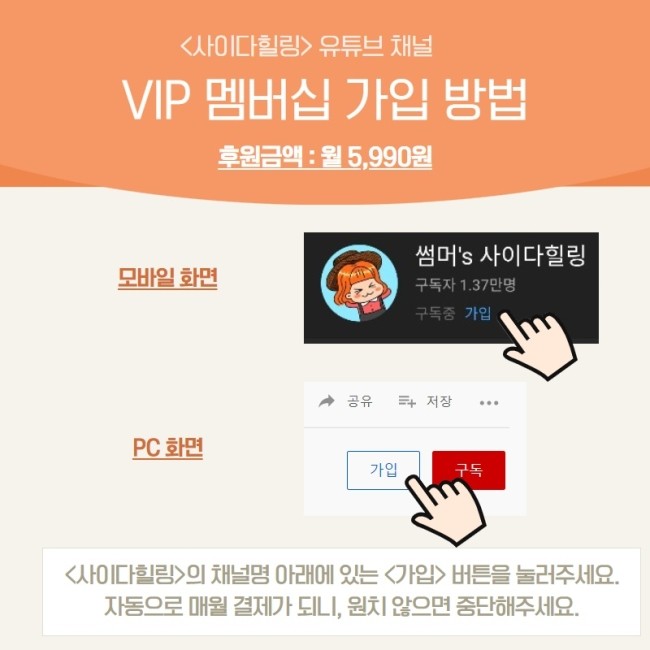 가입은 제 채널의 구독버튼 옆에 있는 <가입> 버튼을 누르시면 됩니다.