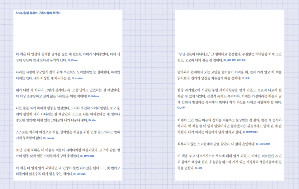 그리고 책의 본문에 부록식으로 더 많은 추천사를 담았습니다.