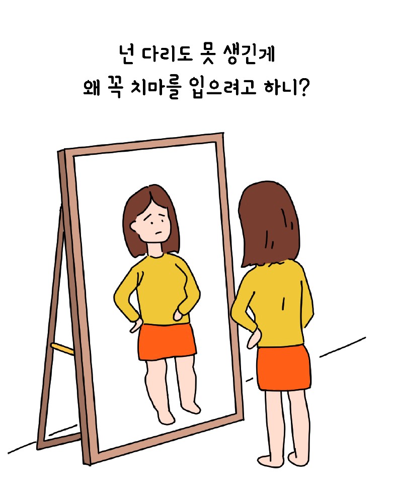 "너는 다리도 못생긴게 항상 치마를 입으려하는구나"