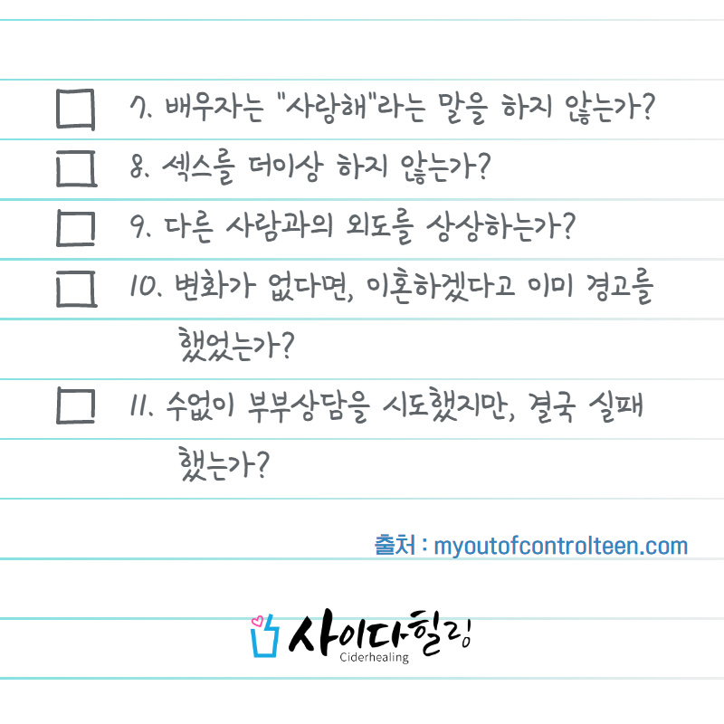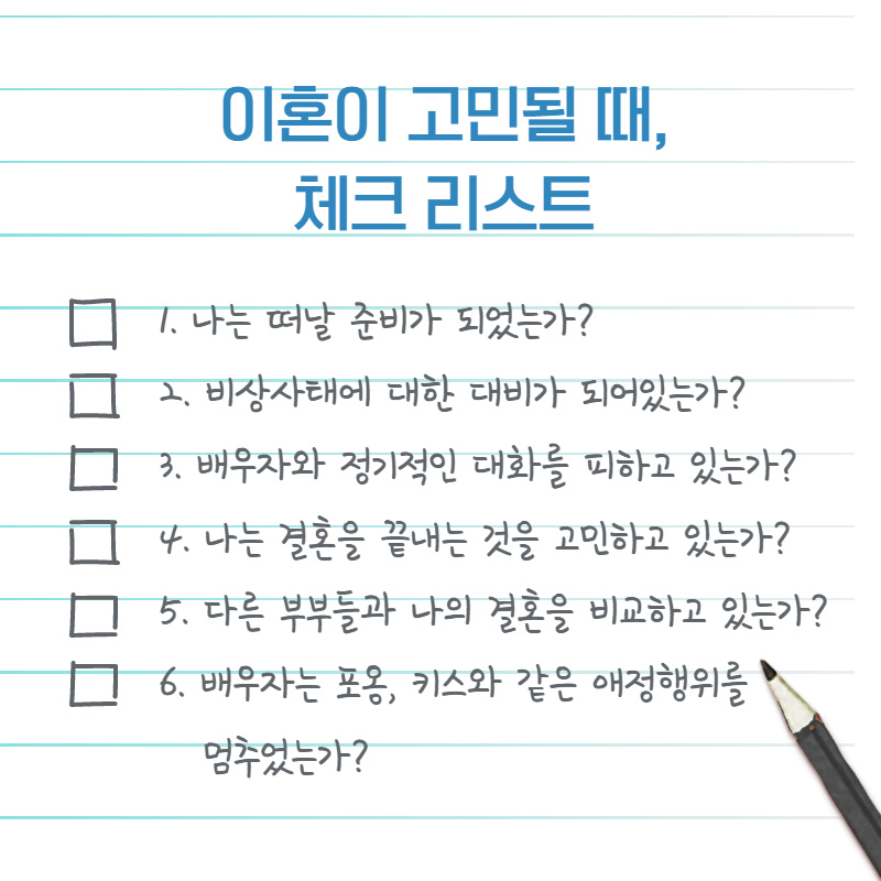 이혼을 할까요? 이혼을 하는 것이 맞을까요? 고민을 하는 분들을 위한 체크리스트입니다.