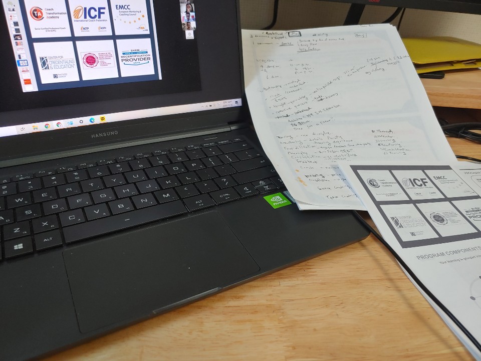전체 강의를 다 보지는 않았다. 조별 토론이나 쉬는 시간은 건너뛰고, 집중해서 들어야하는 설명 부분만 다시 재생하며 복습했다. 잘 알아듣지 못한 부분을 반복해서 다시 듣거나, 배경 지식이 없었던 부분은 검색도 해본다. 요령없이 무식하게 공부하는 건 서른 넘어도 변함이 없구나 싶기도 했다. 하지만 영어로 남들이 다 보는 앞에서 데모 코칭도 진행해야하고, 실제로 1:1 멘토링까지 수차례 진행해야하니 공부할 수 밖에 없다. 언어 실력이야 단기간에 끌어올리기 어려우니 영어로 지식을 완벽하게 익히는 것이 가장 좋은 방법이다.
