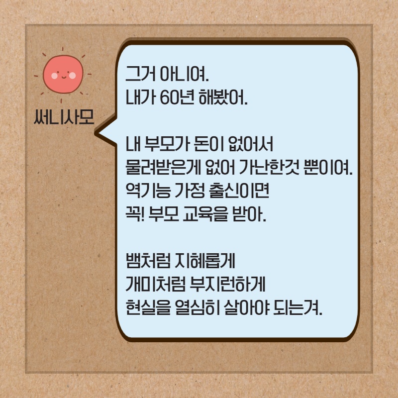 우연히 뵙게 된 써니 사모님의 이야기를 들으며 공감이 되었고, 사모님께서도 흔쾌히 자신의 경험과 깨달음을 나눠주고 싶어하셔서 써니사모 영상 시리즈를 1, 2, 3탄 업로드하였다. (사이다힐링 유튜브에서 봐주세요.)