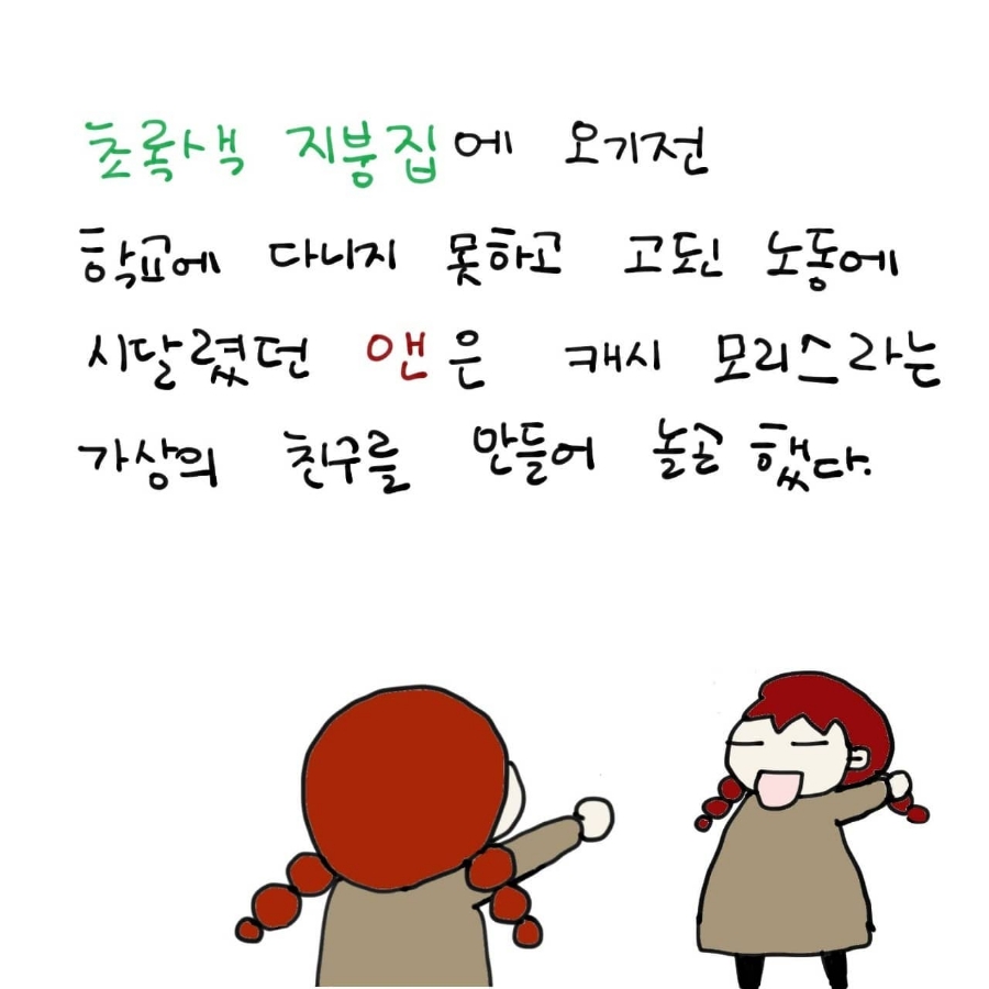 고아였던 앤은 자신을 거둬주었던 몇몇 집을 오가며 살았는데, 그 가정들은 앤을 돌봐주기 위해 거둔 것이 아니라 앤의 노동력이 필요해서 앤을 데리고 있었던 것이다. 외동 아들 한 명을 보는 나도 이렇게 버겁고 헉헉 거리는데... 고작 초등학교 저학년이었던 앤이 어린 아이들을 돌봐야했다니. 게다가 어린이집도 없고, 일회용 기저귀도 없던 시절이다. 요즘 세상이었다면 <그것이 알고싶다>에서 취재하여 앤 구출 작전이라도 벌어졌을 일이다.