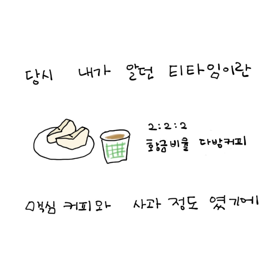 그도 그럴 것이 내가 알고 있는 차란 둘, 둘, 둘! 황금비율의 인스턴트 커피 정도였다. 집에 손님이 오면 작은 교자상에 엄마는 커피와 사과를 내왔다. 차를 마신다는 건 식후 디저트 정도였다.