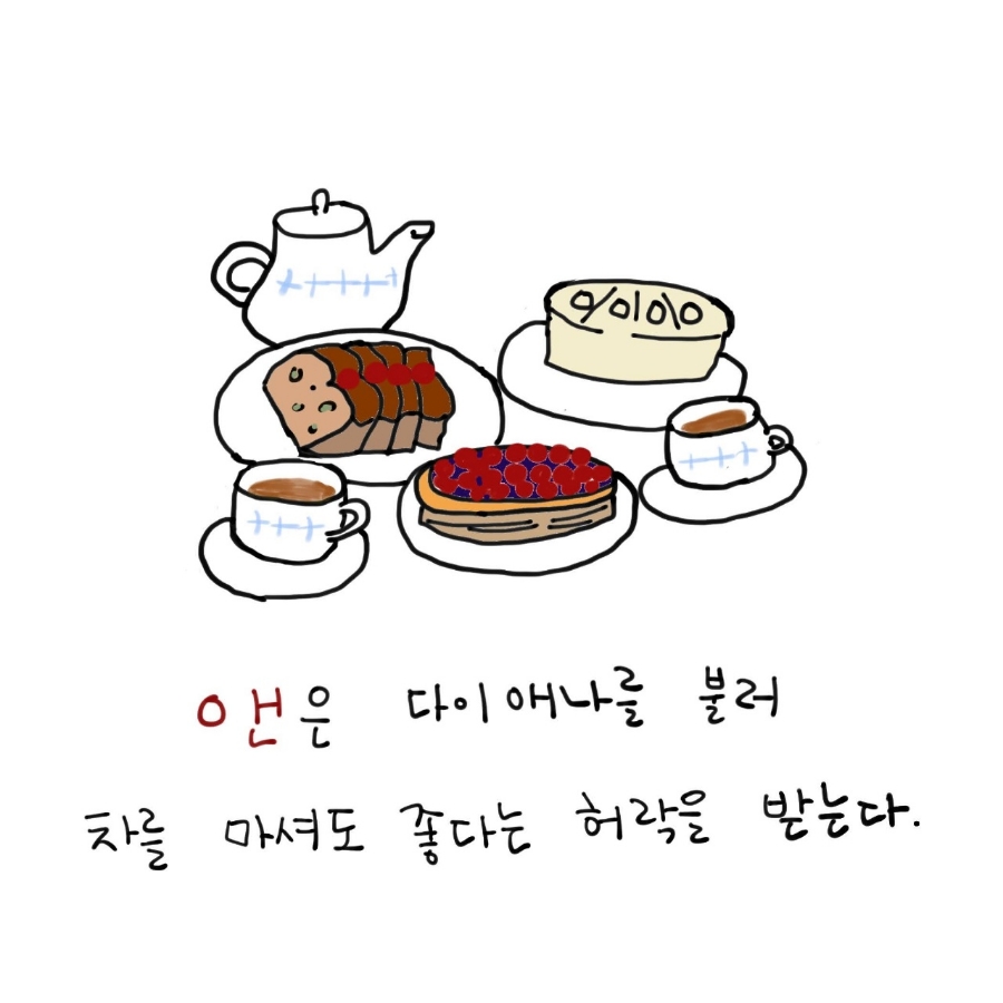 빨강머리앤에서는 차를 마시러 오라거나 차에 초대한다는 표현이 많이 온다. 도대체 왜 사람을 불러서 밥은 안주고 차와 쿠키, 케잌을 주는 걸까? 손님이야 그렇다쳐도 힘들게 감사농사를 지어 허기졌을 매슈와 일꾼 제리에게까지 저녁에 밥은 커녕 차를 준다. 초코 케이크를 하나 구워 생색을 내는 모습이라니... ...  한그릇  한그릇 든든하게 먹고 후식으로 커피를 먹는 나에게는 이해할  없는 풍경이었다.