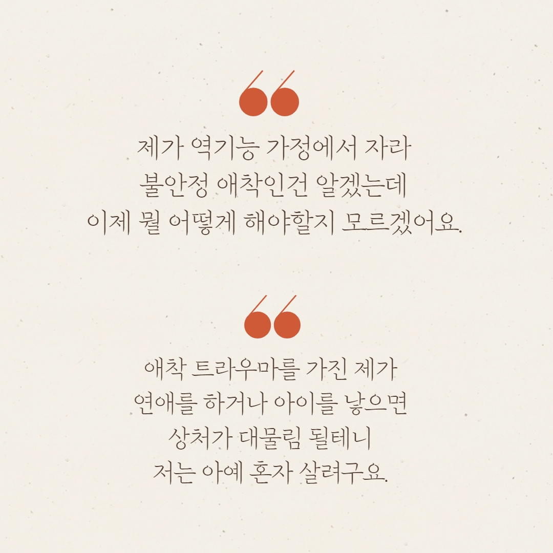 많은 분들이 불안정 애착을 대물림하지 않는 손쉬운(?) 방법을 찾곤 합니다.