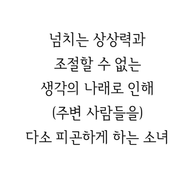 저는 정말 과도하게 말많고 생각많고 상상많은 캐릭터를