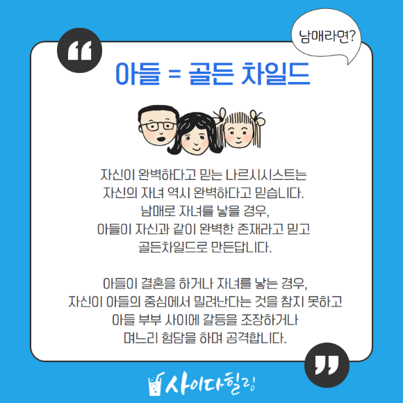 제가 나르시시스트 엄마-딸에 대한 영상을 많이 만들다보니 그 동안 나르시시스트 엄마와 아들은? 시어머니와 며느리는? 나르시시스트 아빠는? 이렇게 많은 질문이 있었어요 ^^